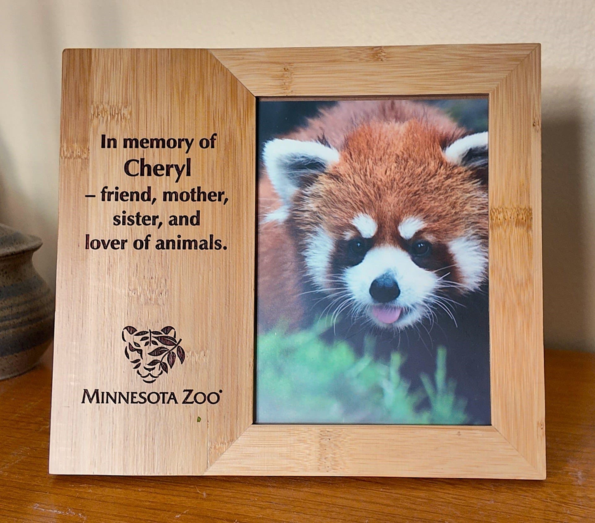 Celebrate the life of someone special with a gift that helps save wildlife. When you make a memorial donation, you’ll provide critical funding and resources that help the Zoo connect people to the natural world — while creating a lasting keepsake in memory of your loved one. Receive a custom-engraved photo frame with your personalized message displaying an animal of your choice.