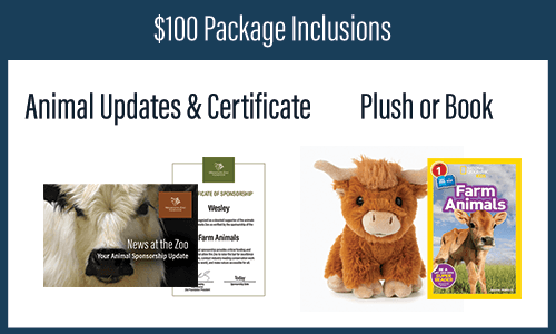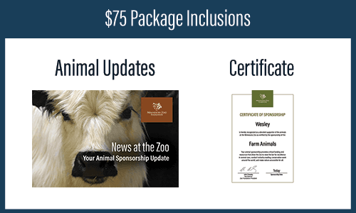 Enjoy a personalized animal sponsorship certificate, a year of exclusive animal updates, plus your choice of ONE of the following add-ons: